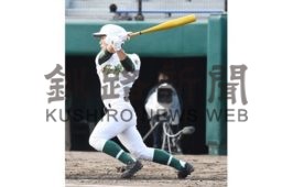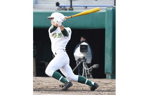 [写真/【準決勝、旭川実業│武修館】2回、チーム初安打となる二塁打を放った武修館の倉 ]