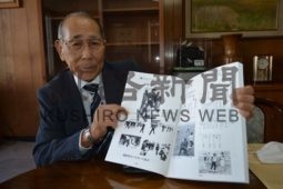 [写真/自費出版した「ソフトボールの歩み」を手に野田さん ]