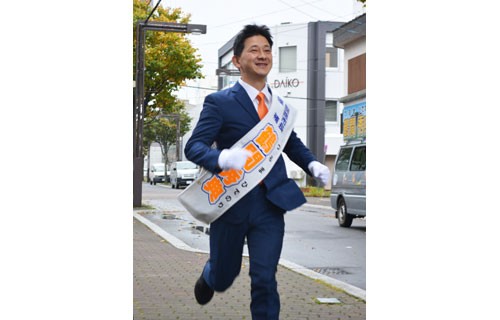 [写真/事務所を構える市内中心街を走り、支援を訴える鶴間氏 ]