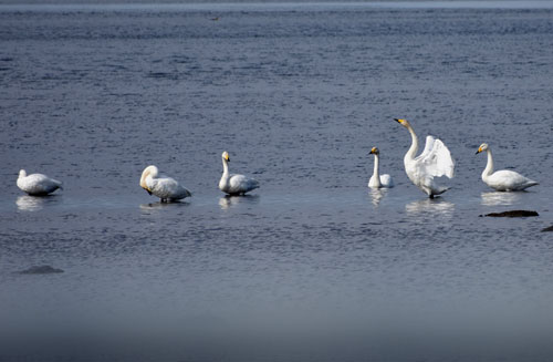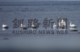 [写真/白鳥の湖・風蓮湖に飛来し始めたオオハクチョウ ]