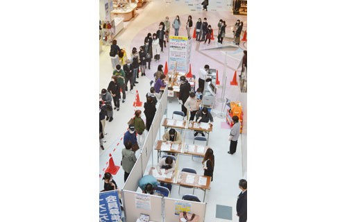 [写真/長蛇の列ができた出張申請サポート会場 ]