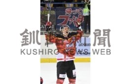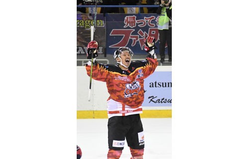 [写真/【ひがし北海道―王子】第2ピリオド15分、ゴールを奪い、両手を挙げて喜ぶDF伊藤 ]