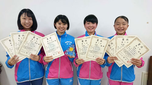 [写真/クラブ対抗戦で団体優勝を飾った根室SCの宮下さん、鈴木さん、太田楓さん、捺さん姉妹(左から) ]