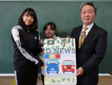 交通安全の啓発はがき、浜中小児童が原画制作(2020-11-05)
