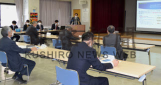 [写真/町の将来像に向けた提案をする若手職員ら ]