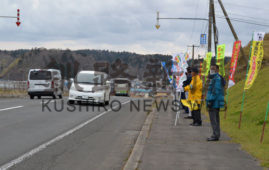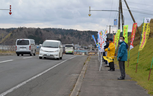 国道沿いで旗の波、安全運転を訴え(2020-11-17)