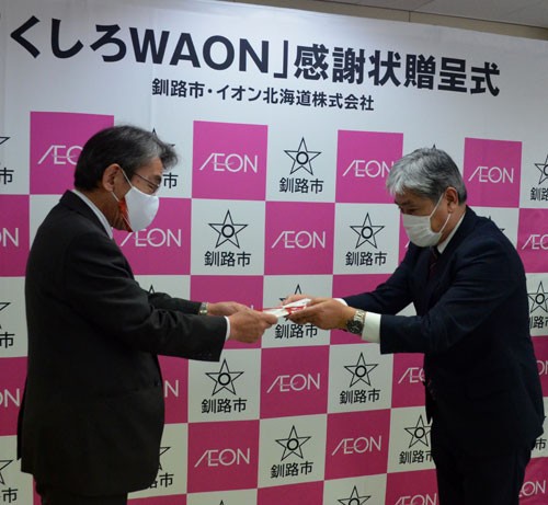 「WAON」利用額の一部寄付 イオン北海道が釧路市に(2020-11-18)
