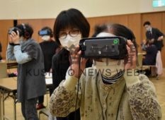 [写真/VR技術で患者の症状を体験する参加者たち ]