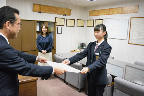 [写真/草地裕志釧路税務署長から表彰状を受け取る土田さん ]