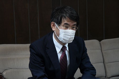 [写真/釧路新聞社を訪れた倉林氏 ]