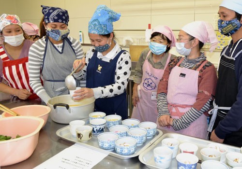 [写真/和気あいあいと調理を楽しむ参加者 ]
