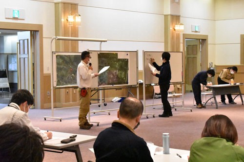[写真/ヒグマによる人身事故発生時の対応と今後の課題を共有した机上訓練 ]