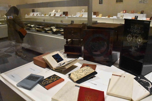 [写真/さまざまな材料や技法で作られた刊本作品が並ぶ会場 ]