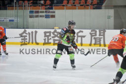 [写真/【準決勝、ひがし北海道―栃木日光】第3ピリオド15秒、先取点を奪ったFW齊藤。相手守備にパックが当たり、幸運なゴールに ]