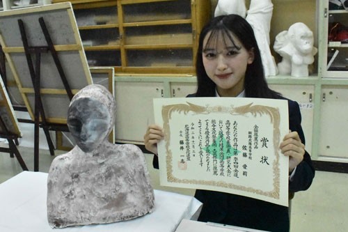 [写真/初めて制作した立体作品で全国行きを決めた佐藤さん ]