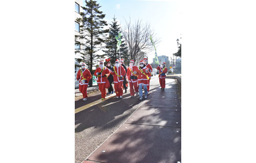 [写真/北大通をサンタクロースの衣装で駆け抜ける会員ら ]