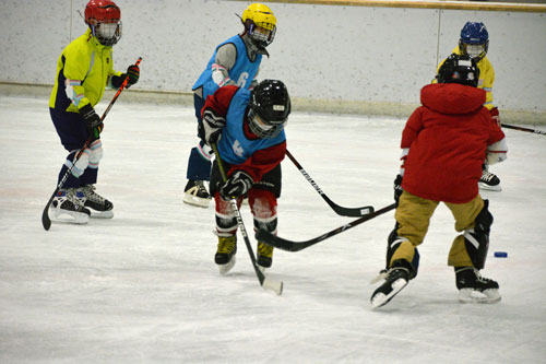 [写真/初心者がアイスホッケー体験。懸命にパックを追った ]