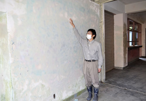 [写真/齋藤さんが落書きを消した病院跡の壁 ]