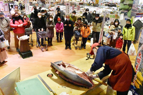 東武サウスヒルズ中標津店でマグロ解体ショー(2020-12-31)