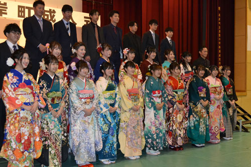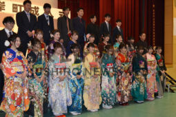[写真/華やかな晴れ着に身を包み記念撮影に臨む新成人 ]