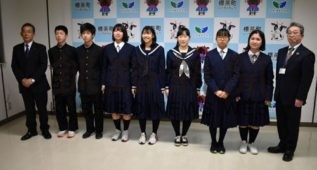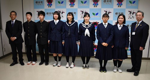 中学生が役場で全道大会出場報告(2021-01-07)