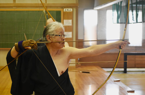 [写真/集中して弓を引く選手 ]