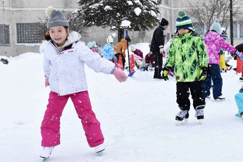 [写真/学校のリンクでスケートを楽しむ児童(芦野小学校) ]