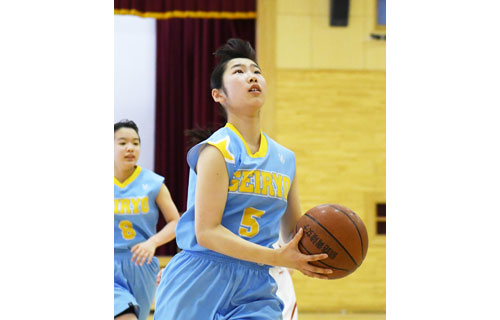 [写真/【女子準々決勝、釧青陵―釧鳥取】先陣を切って敵陣に攻め込む釧青陵2年の須藤杏実 ]