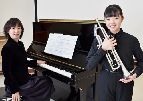 [写真/ピアノ伴奏の黒木さん(左)と個人コンテストの撮影に臨んだ菅野さん ]