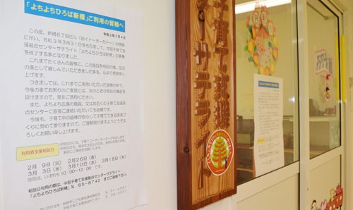 [写真/よちよちひろば新橋の入り口付近に張られた閉所のお知らせ ]