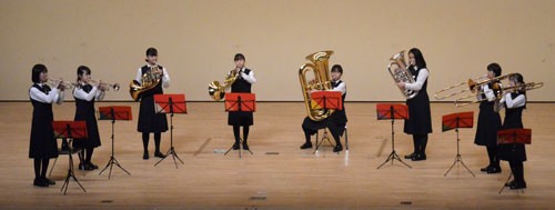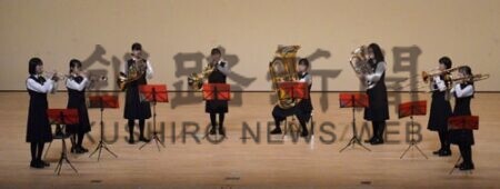 [写真/金管八重奏で曲を披露した鳥取西中学校の生徒 ]