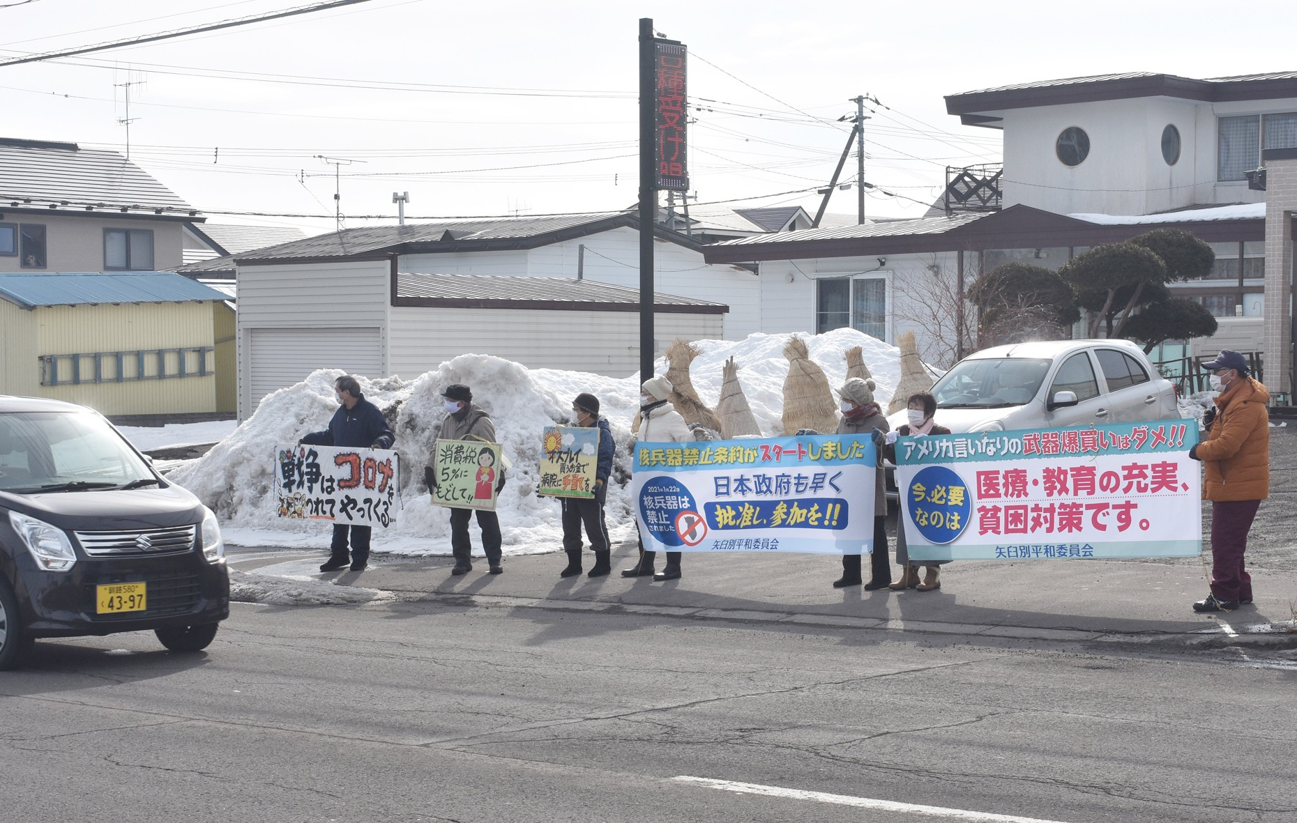 矢臼別平和委員会が横断幕で核兵器禁止条約への批准訴え(2021-02-25)