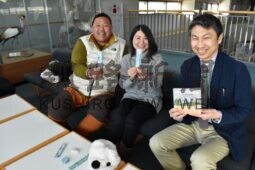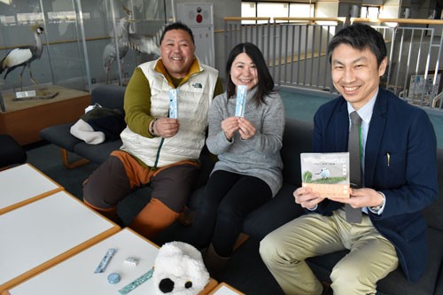 [写真/シマエナガさんシリーズの制作を担当する(左から)山本さん、河瀬さんと佐藤社長 ]