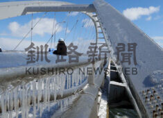 [写真/つららの影響で通行止めの温根沼大橋 ]