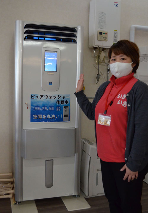 [写真/テニスコート1面分の空間が清浄化できるピュアウォッシャー ]