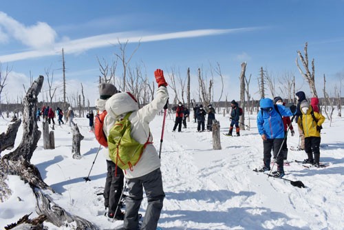 [写真/雪原と青空の絶景の中、思い思いの撮影を楽しむ参加者たち ]
