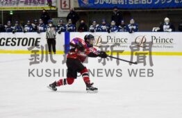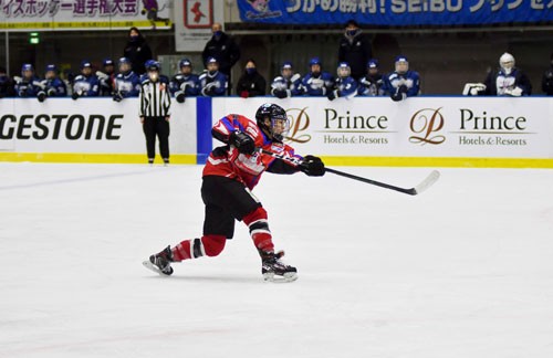 [写真/【Bプール予選トーナメント1位決定戦、Daishin-SEIBUプリンセスラビッツ】第3ピリオド19分、意地の長距離弾を沈めるDaishinのFW浮田 ]