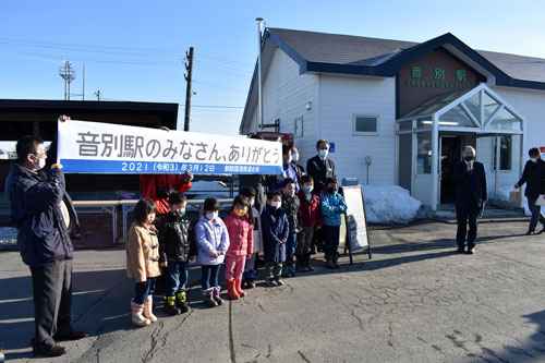 音別駅無人化惜しみ 駅員に感謝のセレモニー(2021-03-13)