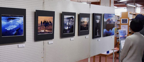 [写真/町図書館で開かれている高橋さんの写真展 ]