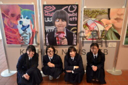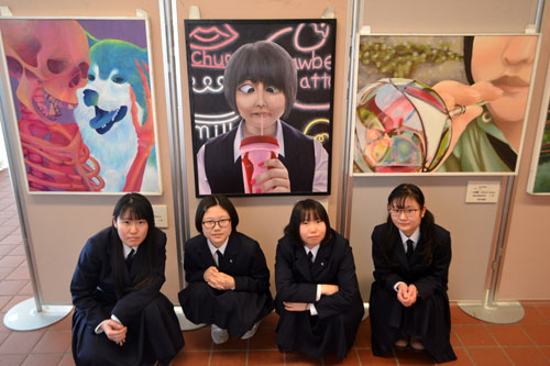 [写真/個性的な作品が多く並ぶ「陽美展」をPRする北陽高校美術部の部員ら ]