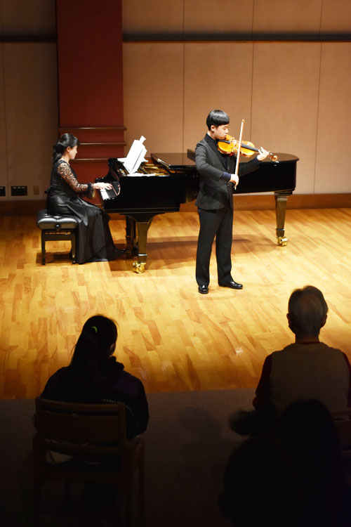 [写真/心を込めてバイオリンを演奏する申さん ]