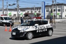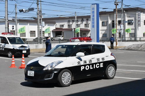 [写真/関係者に見守られながら出発するパトカー(中標津) ]