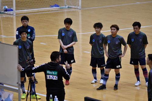 [写真/練習中のミーティングで、意図や目的を真剣なまなざしで聞く選手たち ]
