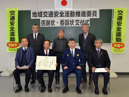 [写真/佐々木署長(前列右から2人目)と高橋さん(同3人目)、委嘱を受けた委員 ]