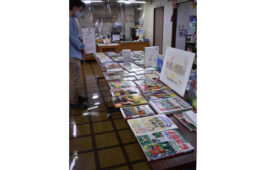 [写真/町図書館で開かれている「外を楽しむ図書展示」 ]
