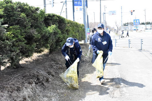 [写真/店舗周辺のごみ拾いに汗を流す従業員ら ]