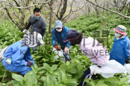 [写真/確認をしながら行われたオオハンゴンソウの防除作業 ]