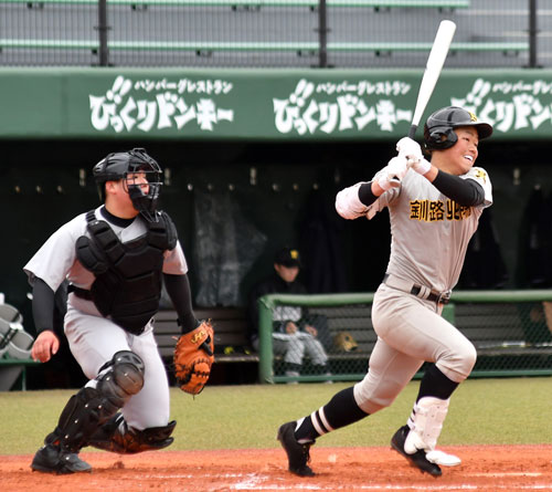 [写真/【代表決定戦、釧北陽─釧工業】3回、先制の適時右前打を放つ釧北陽の武隈 ]