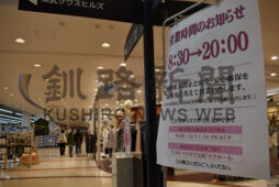 [写真/緊急事態宣言により営業時間の変更などを知らせる東武サウスヒルズ中標津店(16日午後4時ごろ) ]