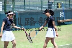 [写真/女子ダブルスで優勝した釧江南の佐藤・小嶋組。1ゲームも落とさず完勝 ]